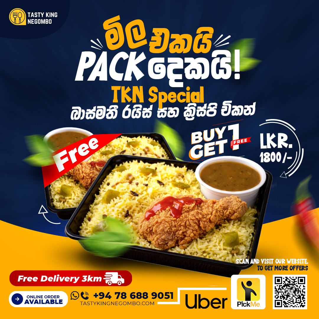 THIS WEEK ONLYHungry for a deal? 🍗 Buy one Chicken Fried Rice online and get the second one ABSOLUTELY FREE! Plus, we have a special 'Buy 2 Get 1 Free' offer running now. Don't miss out on the best flavor in Negombo—order your Tasty King feast today!