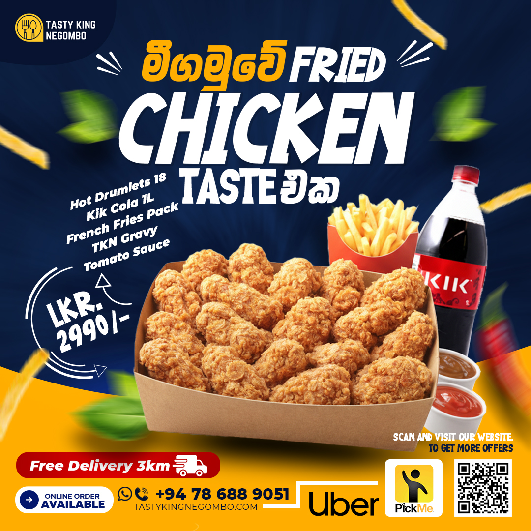 Visit us today or call for delivery to experience the finest crispy fried chicken in town. Follow us for special deals and discover why we are the king of taste! Located conveniently for all chicken lovers in Negombo, we are ready to serve you the perfect meal.